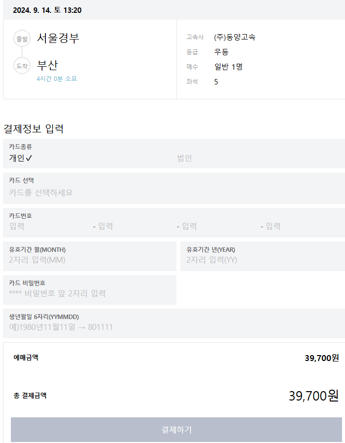 ⑥ 결제 정보 입력 및 결제하기